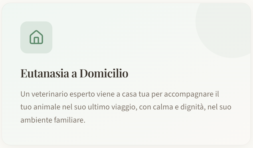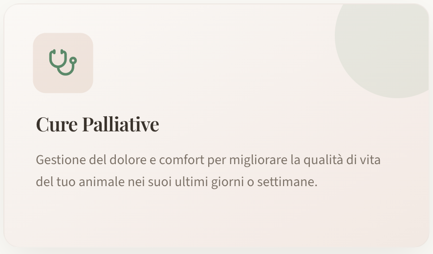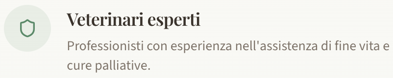 Un approccio completo e compassionevole per le cure di fine vita, progettato intorno alle esigenze tue e del tuo animale.
