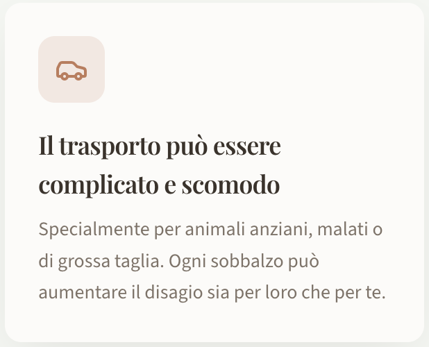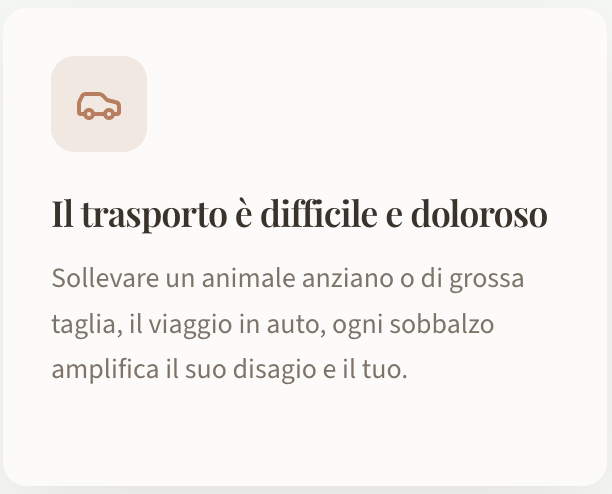 Un percorso semplice e rispettoso, progettato per ridurre lo stress e permetterti di concentrarti su ciò che conta: stare vicino al tuo animale.